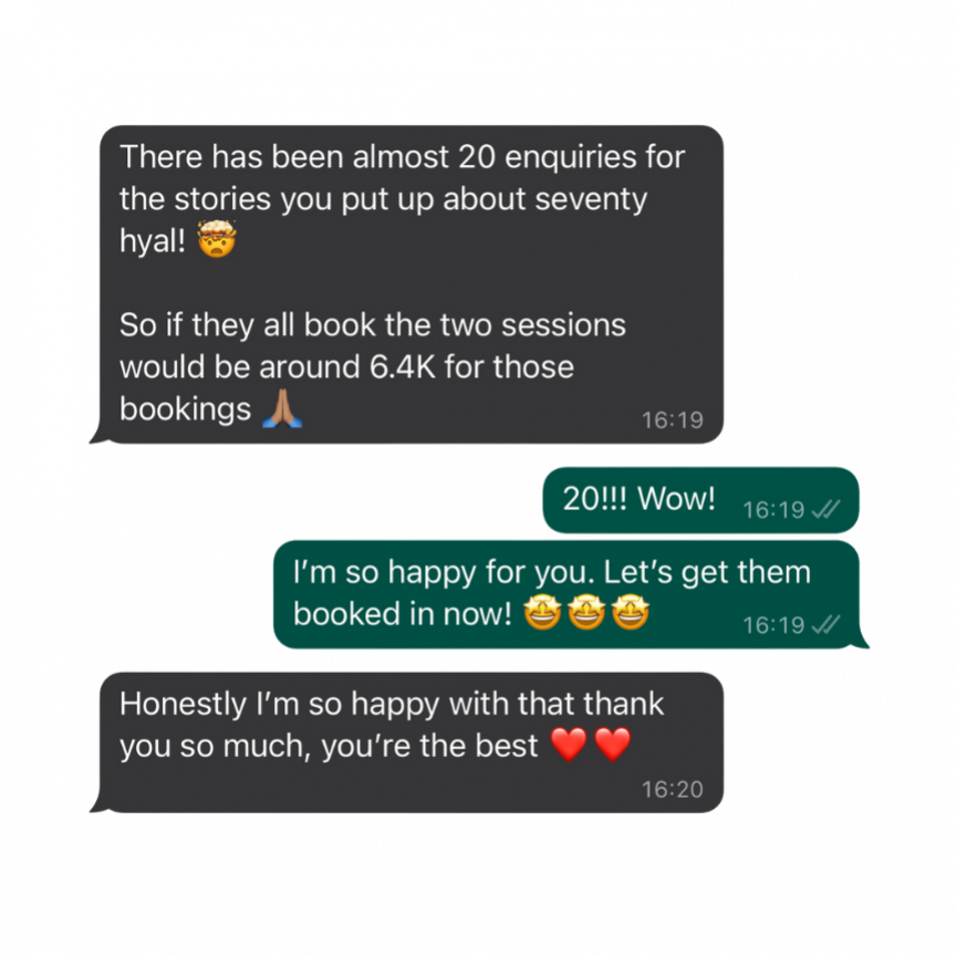 A client receiving a booking worth £700 after sharing her content
